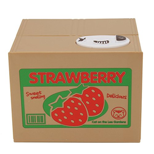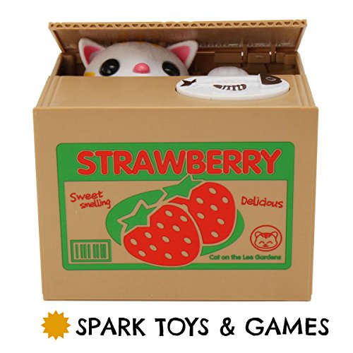 CUTE & ADORABLE - Place any size coin on top of the strawberry box and the adorable kitten will pop up, take the coin and then go back in the box