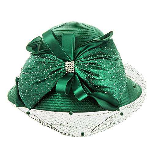Product Description? Color : Green ? Theme : Bow ? Crown Circumference : 23" ? Crown Height : 5" ? Brim Width : 4" ? Material : 100% Polyester ? Large Bow on Front Netting Satin Braid Hat0