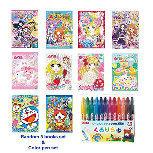 -. Title : Showa Coloring Art Books Random 5 Book SET B5, & Pentel Colored pencil Doraemon yokai watch aikatsu Bonbon ribbon Spoon pet P.R.Incess World Happy bridal Joanna