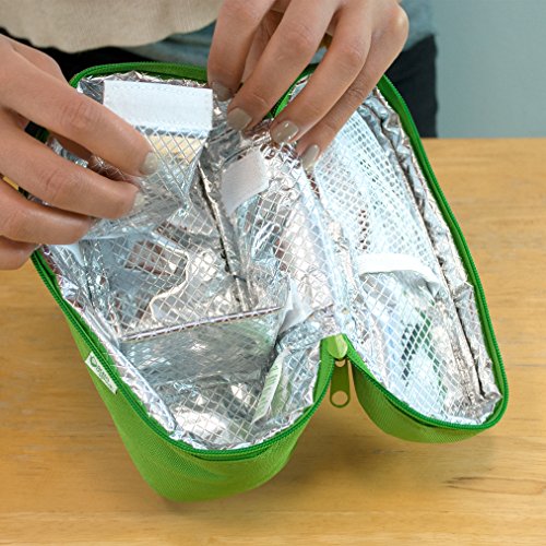 -. Feature : insulated inside layer keeps food warm or cool / durable, waterproof material / attachable, adjustable handle and zippered closure for easy access / mesh pocket holds feeding spoons / adjustable inserts fit different size food cubes