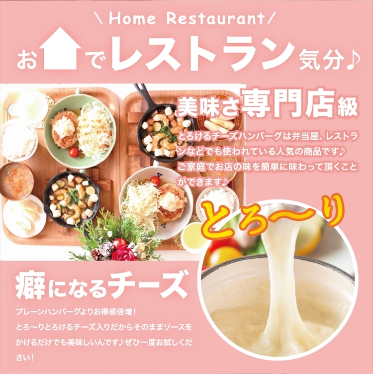 とろけるチーズハンバーグはお弁当屋さん、レストランなどでも使われている人気の商品です
