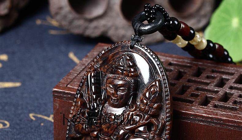 开光红竹石影子石金丝红曜石生肖属牛属虎本命佛虚空藏菩萨吊坠