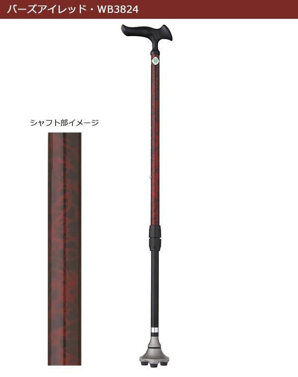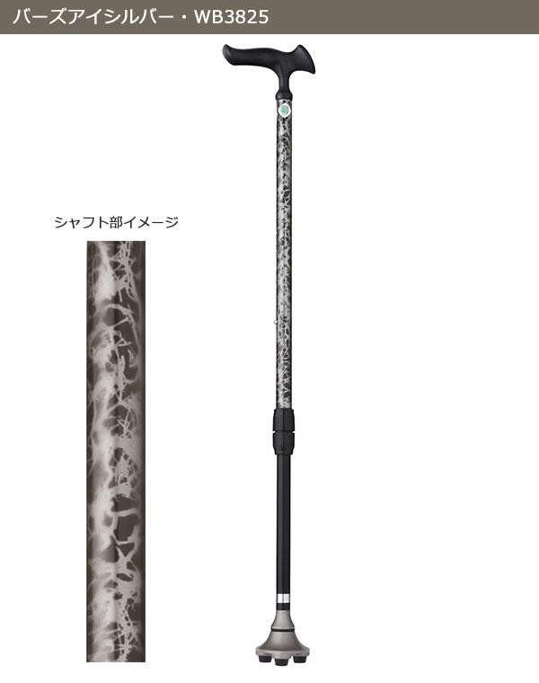 かるがもシリーズは握りやすいオリジナルグリップを採用しています。かるがも3ポイントステッキは、さらにグリップ上部にエラストマー樹脂を採用しているので、水で濡れても手が滑り難くなっています。石突部分の3つの支点が、滑りやすい所の路面をしっかりと捕えます。シャフト部分は、高級感のある「バーズアイシリーズ」です。 |
