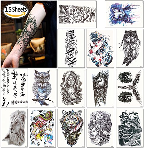 VALUE PACK: 15 Large Half Sleeve Tattoo Sheets. Sheet size 5.9"X 8.27".