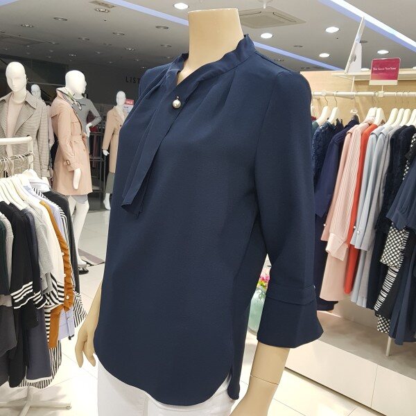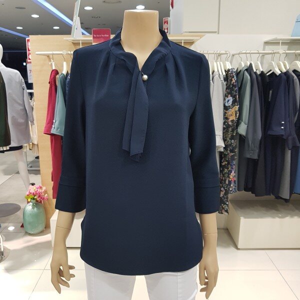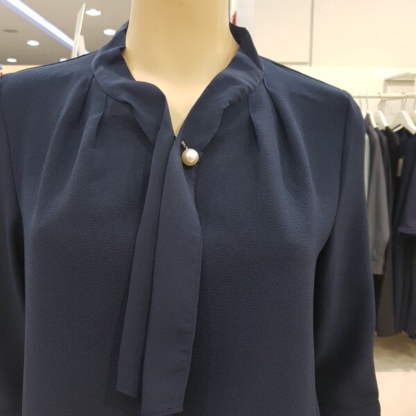 넥라인의 러블리한 살짝셔링의 포인트와 심플한 진주장식이 어우러져 사랑스러운 모던함이 돋보입니다ㆍ 부드럽고 착용감 좋은 폴리소재의 특징을살려 자연스럽게 흐르는 핏감이 사랑스럽습니다ㆍ