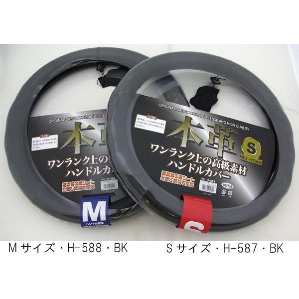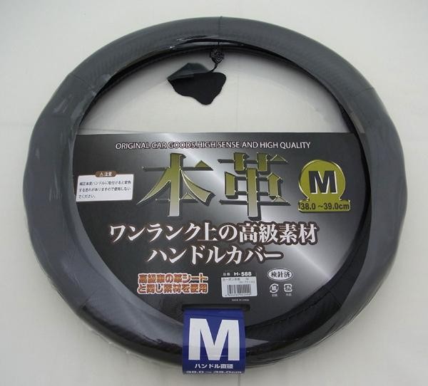 高級車の革シートと同じ、ワンランク上の高級素材を使用したハンドルカバーです。 製造国:中国 素材・材質:表:PVC(カーボン柄)、本革(牛革)リング:ゴム 仕様:対応サイズ:S(ハンドル直径36.5~37.9cm)対応サイズ:M(ハンドル直径38.0~39.0cm) ※サプライヤー直送品  ご注文後2~3営業日後の出荷となります【商品名】シーエー産商 カーボン本革ハンドルカバー Mサイズ・H-588・BK