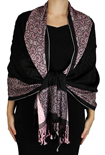 Binding : Apparel Product Description New Pashminas by Peach Couture. Peach Couture is a registered trademark. FEATURES: Solid paisley print inside with a wrapped floral border. This 100% Viscose scarf features a 2" fringe trim on both ends. This timeless scarf wrap is the best way to spice up an ensemble while staying stylish and trendy. These are the finest and best quality Pashmina shawls available in the market today. Its drape and silky texture have only added to its reputation as a highest quality Fashion wrap available. The Pashmina is remarkably plush, soft to the touch and very comfortable. Fashion gurus pronounce it as very versatile, complementing any outfit and an essential accessory. SIZE and MATERIAL DETAILS: Product Dimensions (IN): Dimensions: 75" x 27" Fringes: 3" Product Material: 100% Viscose Pashmina. NOTICE: Actual colors may vary slightly from the color on your screen due to monitor color restrictions. If you have any questions, please email us freely,we will do our best to satisfy you. 0 |