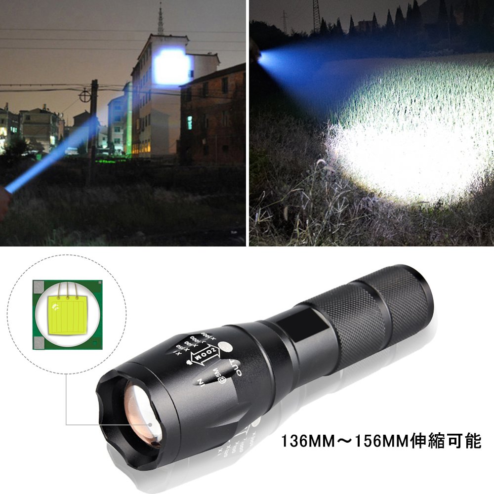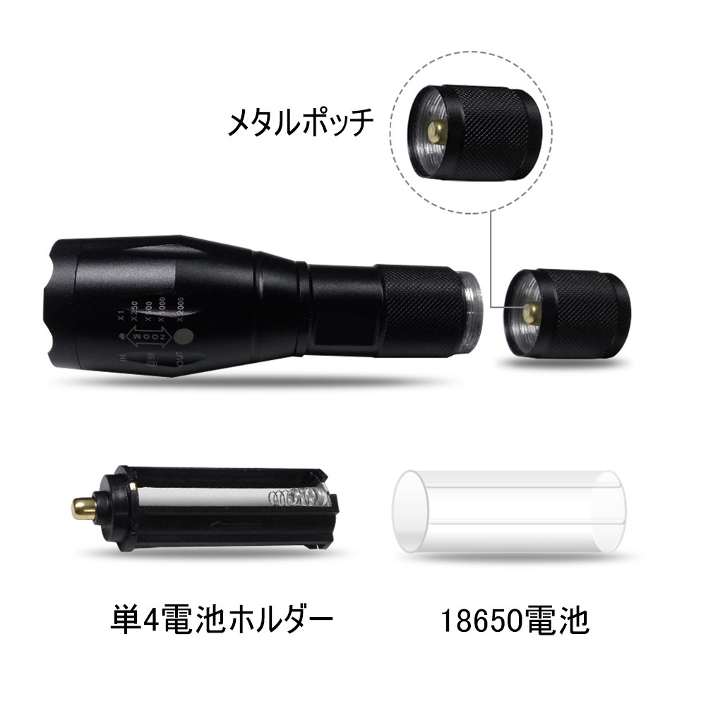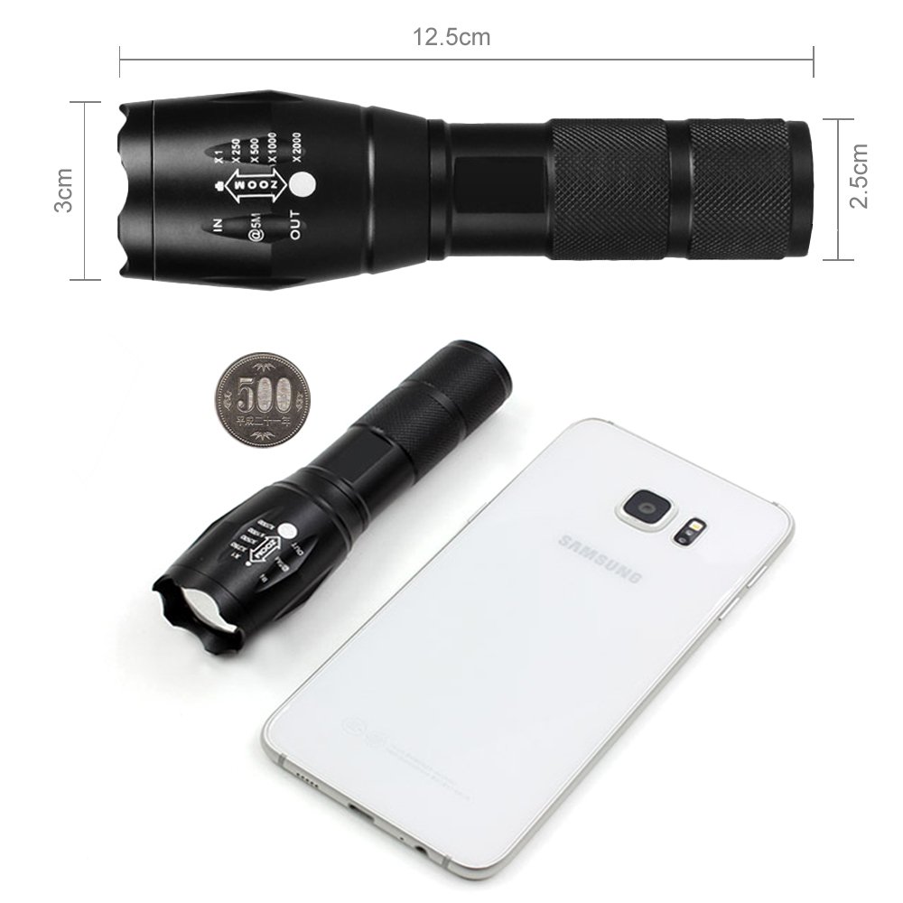 Battery compatible: 3 AAA batteries; 18650 lithium ion rechargeable battery