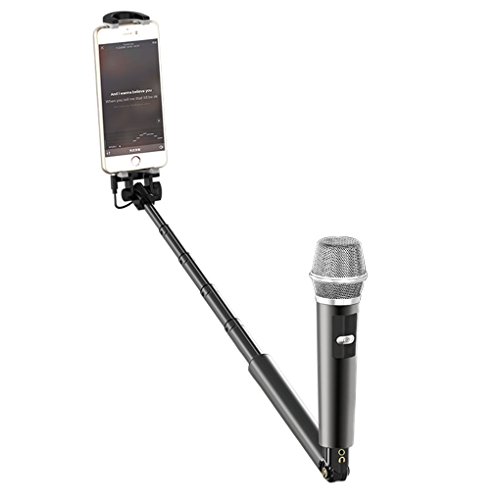 Geelyda Extendable Mini Karaoke Player Selfie Stick with Microphone for Andriod and IOS,Silver