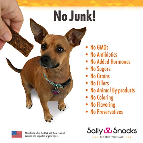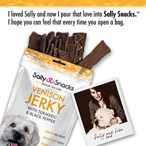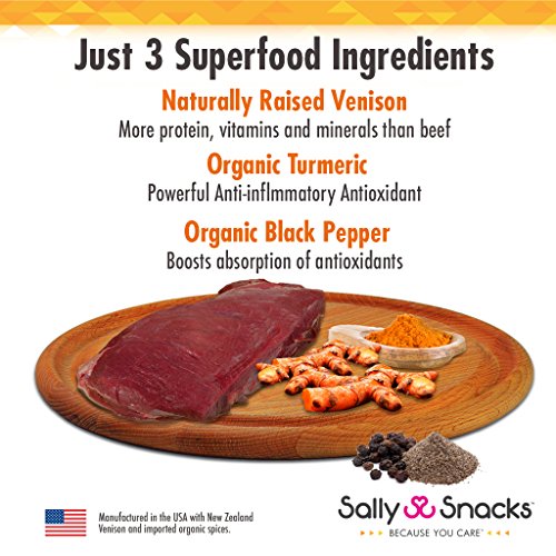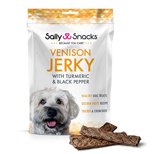 -. Title : Sally Snacks Venison Jerky with Organic Turmeric& Black Pepper (4oz) - Delicious Gourmet Dog Treats Packed with Powerful Antioxidants, Minerals and Nutrients to Support Dog Health - USA Manufactured