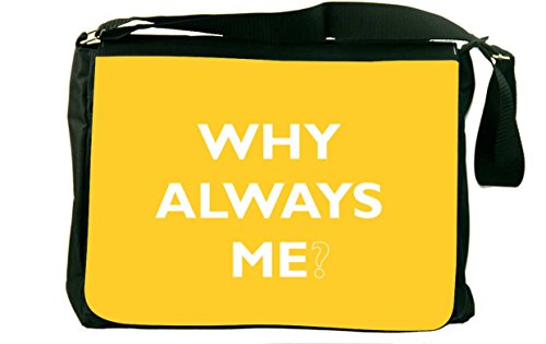 Studio : Rikki Knight LLC Publisher : Rikki Knight LLC Binding : Office Product Product Description Whether from home to the office, on a business trip or to school, the why always me Yellow color laptop bag notebook bag messenger bag school bag keeps you comfortable and your cargo safe and sound - this bag features pockets on the outside below the flap for your cellphone, pens, iPod, notebook etc. And also a zippered compartment on the inside, with plenty of space to store your textbooks, folders, files, etc. And up to a 14 inch laptop (laptop sleeve sold separately) - the vibrant image on the front is professionally printed and will not fade or peel with time and this bag will surely be an eye catcher wherever you go with it. Disclaimer: all images are printed directly into the material - the Texture of the image will always be a flat surface. Any images that appears to be 3D, textured, or glittery are flat printed images. 0