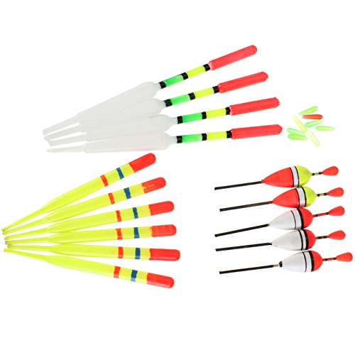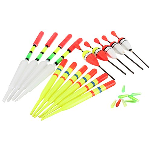 -. Feature : 15pcs fishing floats, assorted size for most type of angling. / Complete with attachment rubbers. / 15pcs including: 5pcs Bobbers Rod(8cm)- 6pcs Yellow Floats Tube(9.5cm)- 4pcs Long Float Slips(15cm) / Package Includes: 1 x 15pcs Fishing Lure Floats