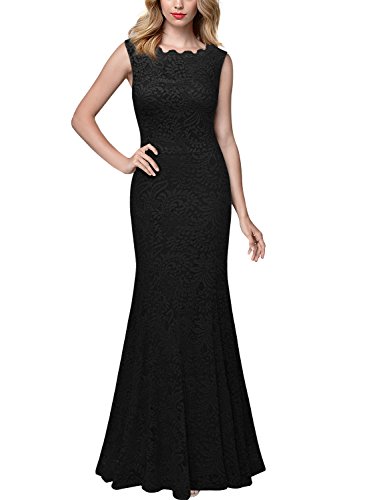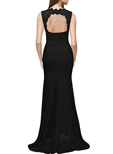 Title : Miusol Women's 1920'S Retro Floral Lace Sleeveless Halter Bridesmaid Long Dress (X-Large, Black)