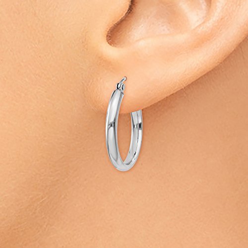-. Feature : SPECIFICATIONS: Jewelry Type: Earrings, Earring Type: Hoop, Material: P.R.Imary: Gold, Material: P.R.Imary - Color: White, Material: P.R.Imary - Purity: 14K, Length of Item: 21mm, Width of Item: 2.75mm, Plating: Rhodium, Earring Closure: Wire & Clutch / ATTRIBUTES: Polished, 14K White gold, Hollow, Hinged post / Roy Rose Jewelry Style# RRTF577 ~ Solid 14k White Gold Gold / 100% Satisfaction Guaranteed - 30 Day Return - Gift Box included / Roy Rose Jewelry - selling fine jewelry since 1980 and online since 1999