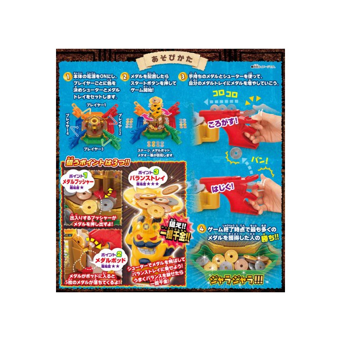 본체1개 메달 트레이(오렌지적 청록색)각1개 슈터(오렌지적 청록색)각1개 메달(금색 은색동색)각32매 《메다오》상1개 balanced 레이1개 씰 씨트1매 메달 수납용 대1 매취급 설명서1매