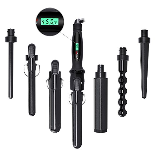 7 INTERCHANGEABLE BARRELS FOR ALL CURLS: Allow you to design your curly styles. Efficiently curls your hair with small and big curls, waves, corkscrew curls, ringlets etc. Choose the barrel you like between 32/32mm, 25/25mm, 25/13mm, 19/19mm, 13/13mm, 19mm and an oval barrel.