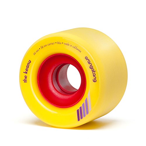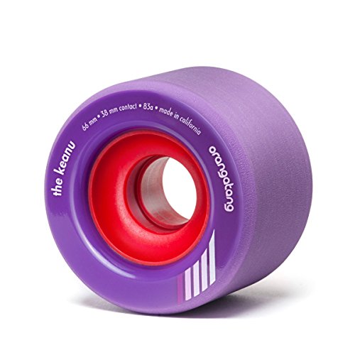 Studio : Orangatang Publisher : Orangatang Product Description With a diminutive presence and quick, bullet-time reflexes, The Keanu is a skilled and adaptable master of all terrains. Adept at slashing the asphalt point break as well as keeping up the speed for technical freeriding. Choose the red core. Whoa. The Keanu features gently bevelled sidewalls, rounded edges, and stone-ground contact surfaces. A newly designed 38x38mm core with a deep "valley"-shaped cross section keeps the lips firmly supported like a burly botox injection, promoting smooth, consistent slides and even wear. The stone-ground contact patch ensures buttery-smooth slides right out of the box. The Keanu is poured in our proprietary Peachy Thane for a balance of buttery drifts and high durability. Slightly grippier than Euphorethane yet slipperier than Happy Thane, Peachy Thane offers a balanced blend of buttery speed control, long slides, and a cush ride. Purchase price includes set of 4 wheels. 0