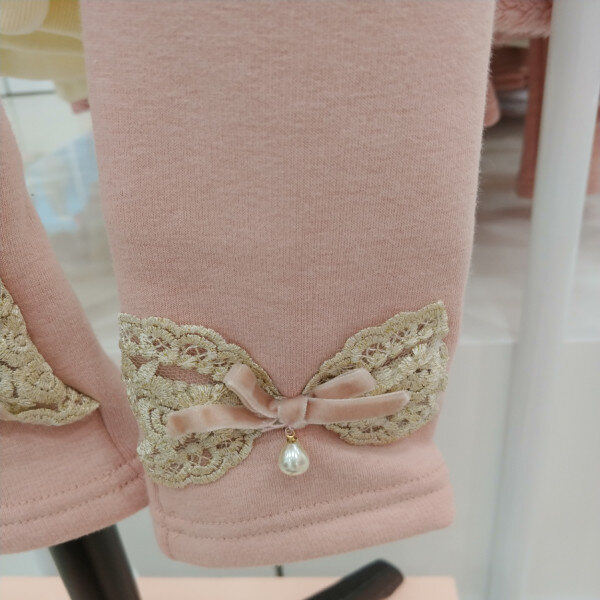 발목에 금장 자수와 리본이 포인트에요~안감 기모처리 되어있어 한겨울도 따뜻하게 입겠네요~기모레깅스지만 많이 두껍지 않아서 활동하기 편하겠어요~튀는 핑크아니고 차분하게 색상 잘나왔네요~^^