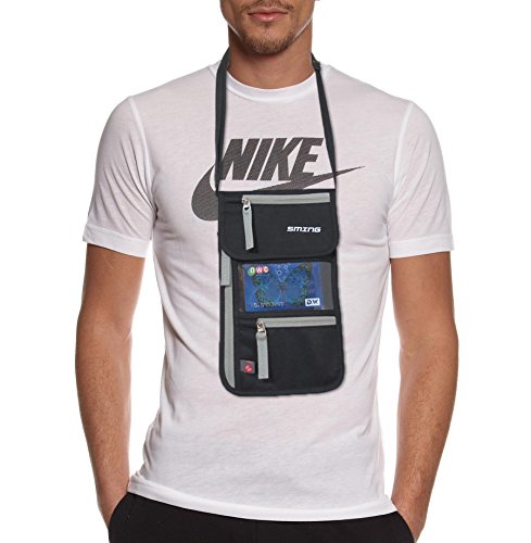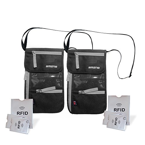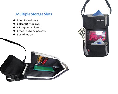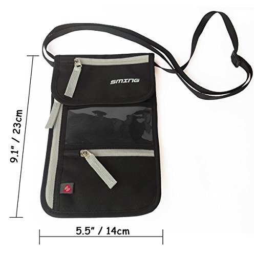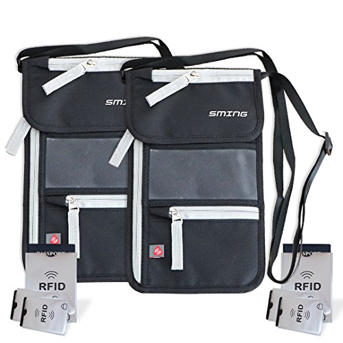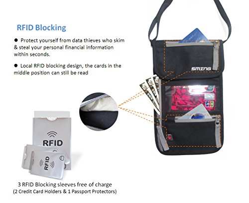 -. Title : SMING Travel Neck Pouch Passport Holder with RFID Blocking- Compact Neck Wallet with free bonus RFID Sleeves