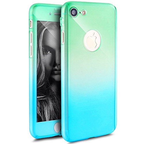iPhone 6 Case,iPhone 6S Case, PHEZEN Gradient Color Full Body Coverage Ultra-thin Hard Hybrid Plastic with [Tempered Glass Screen Protector] Protective Case for iPhone 6/6S 4.7 (Green Blue)