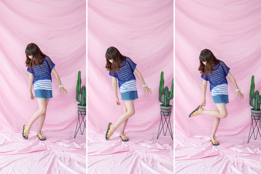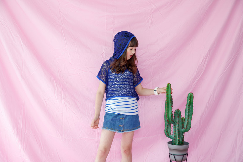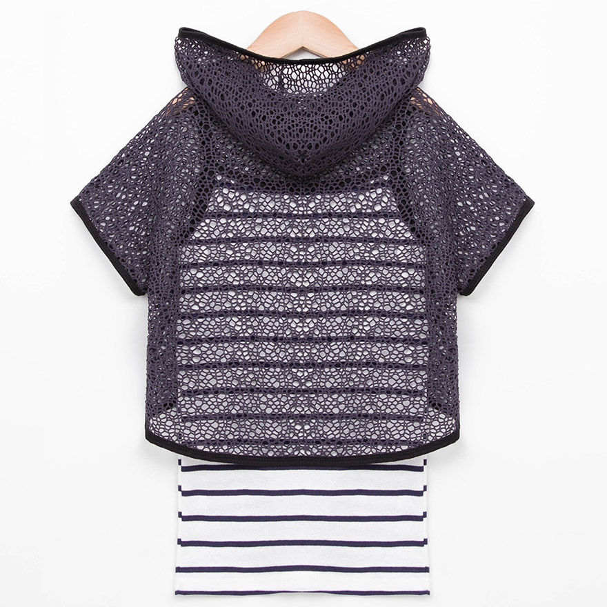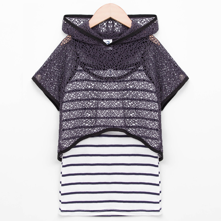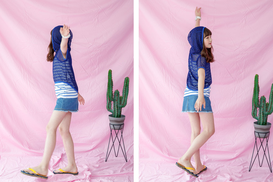 면원단으로 디자인한 나시와 폴리원단으로 디자인한 후드 아우터로구성된,