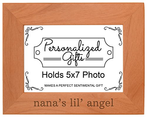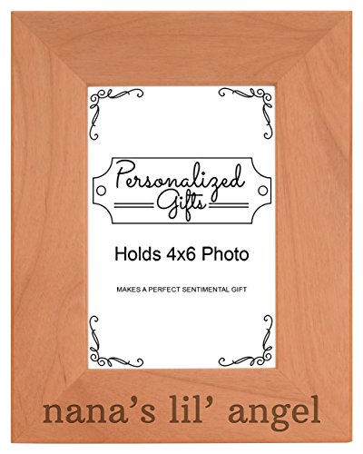 -. Binding : Kitchen -. Brand : Personalized Gifts -. Feature : A perfect Mother's Day gift or birthday memento for sharing memories. / Made from real wood, this natural frame will have its own unique coloration and wood grain pattern. Therefore, product may vary slightly in appearance from image shown. / Frame includes a glass front and can be displayed hanging or standing with built in hook and easel. / This beautifully crafted picture frame is designed and engraved in the USA. / Engraving and frame color may vary slightly, as each piece of wood is unique. -. Model : A-P-L-AWF-0176 -. ProductGroup : Home -. ProductTypeName : HOME -. Title : Mother's Day Gift Nana's Lil' Angel Natural Wood Engraved Photo Picture Frame