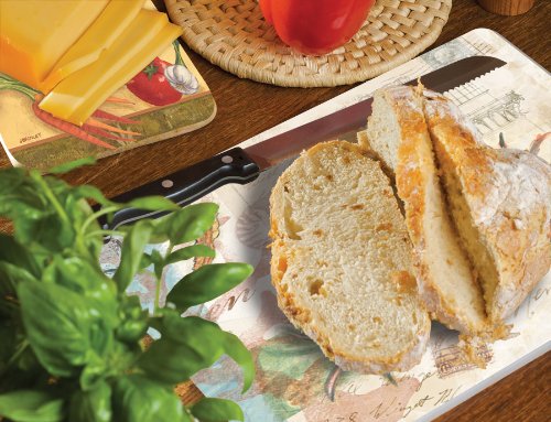 - Non-skid feet on the back help hold board in place and prevent scratches on countertops
