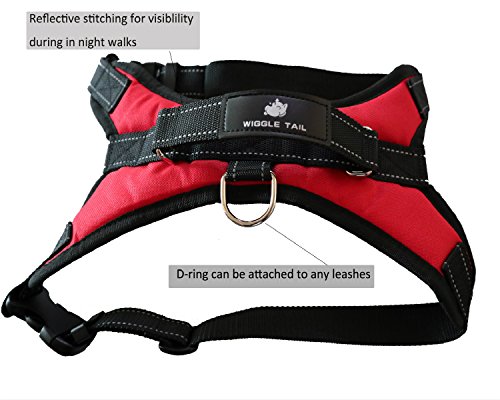 Studio : WIGGLE TAIL Publisher : WIGGLE TAIL Binding : Misc. Product Description *Harnesses are more comfortable for dogs than a leash being tied to the neck collar. Dogs hate being pulled by the neck and usually force them to rebel. *The dog harness is made of high quality oxford/neoprene with soft padding interior ensuring your dog is comfortable, good for long period use! *The strap is adjustable fitting different breed well and two secure quick released buckles which makes it easy to put on and take off. *The No pull handle is connected with the body of harness providing the best stress point to control your excited friend. D-ring in the back can be attached to any leash for pulling /carting work with your dog (strong pull is not recommended). *The Reflective element of design will keep your dog safe even in the dark circumstance.
