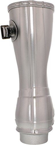 Studio : Hunter Publisher : Hunter Binding : Shoes Product Description The short-shaft style of the original Hunter Boots wellies, updated in metallic rubber. A brushed buckle details the top strap. Woven nylon lining lends extra warmth, and a cushioned footbed offers comfortable wear. Textured sole. 0