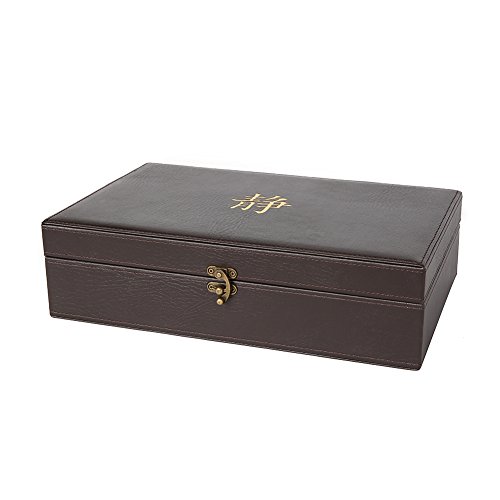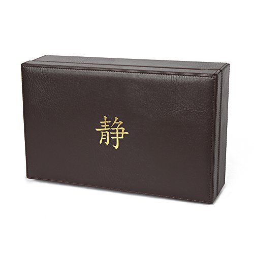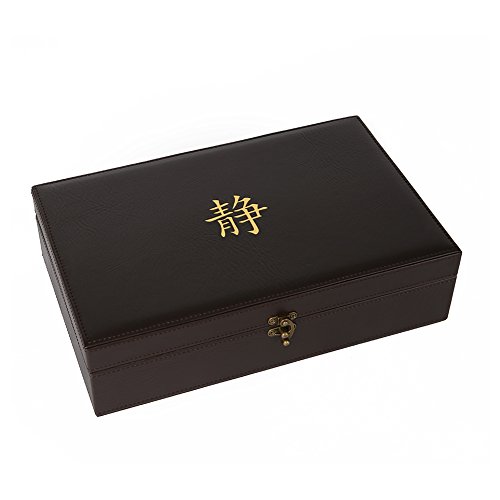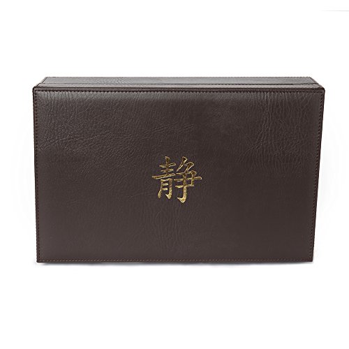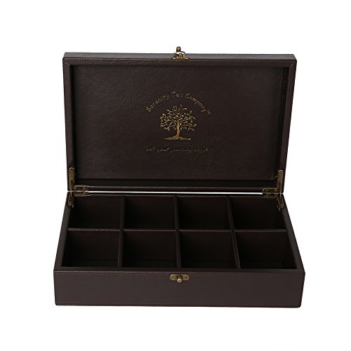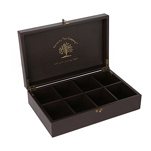 This elegant serenity tea box beautifully stores and preserves your favorite teas. The box is made of high quality, solid hardwood and dark brown leather, which is sure to impress your guests. It comes with exquisite gold embossment of the life tree and lettering "let your journey begin". Each of the 8 equal compartments is large enough to stand your teas either vertically or horizontally with obstructing the closing of the lid. The tea box has a brushed brass latch and newly designed hinges for a more secure open and close. Feel free to take your tea box wherever you may travel. This lid does not allow light to transfer through, so don't worry about your tea getting oxidized. Next time you seek serenity, let your journey begin with your beautiful, handmade serenity tea box.