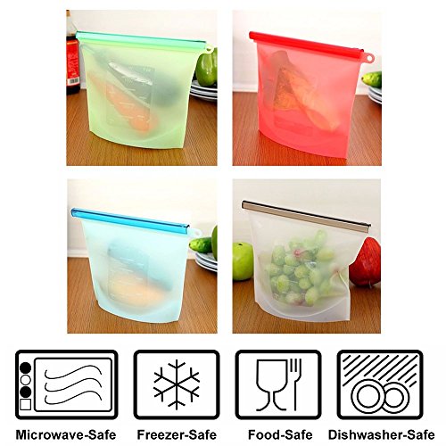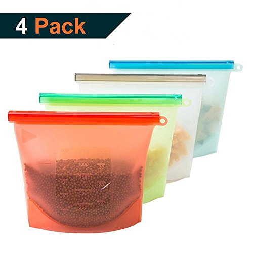 Reusable Food Storage Container Bags with Airtight Seal, Freezer and Microwave Safe (Pack of 4)