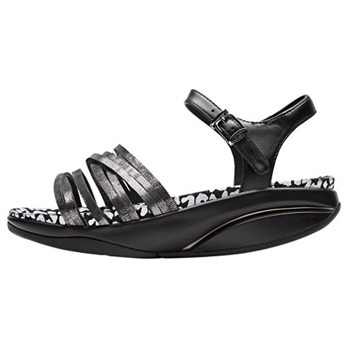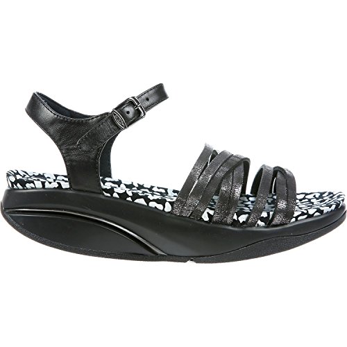 Studio : MBT Publisher : MBT Binding : Apparel Product Description The MBT Kaweria is a strappy women's leather sandal with an adjustable buckle strap with easy on and off clasp system. MBT Kaweria Gold Leather Women's Sandal Features include: Full grain leather upper Microfiber lining Microfiber sock liner Non-marking rubber outsole Adjustable buckle strap MBT Sensor Technology Bottom unit component that is located between the midsole and the outsole and with its soft PU compound creates the specific functionality of the MBT sole Part of the Performance collection If you have any questions you can find the answers in our MBT Shoes Frequently Asked Questions section. Wearing MBT Shoes for the first time? Watch the MBT Shoes Instructional Video The MBT Index simplifies the process of finding the right level of MBT shoe for your needs. It ranks MBT into one of three categories, starting at Activate, our least level of rock, and progressing through Dynamic and ending with the highest level of rock, Performance. The MBT Kaweria has a unique buckle fastening system. You must first adjust the strap and buckle to the size that best fits your foot, then attach the buckle strap to the metal clasp. This system allows you to simply unhook the buckle from the clasp instead of having to unbuckle the strap every time you want to take them off. 0
