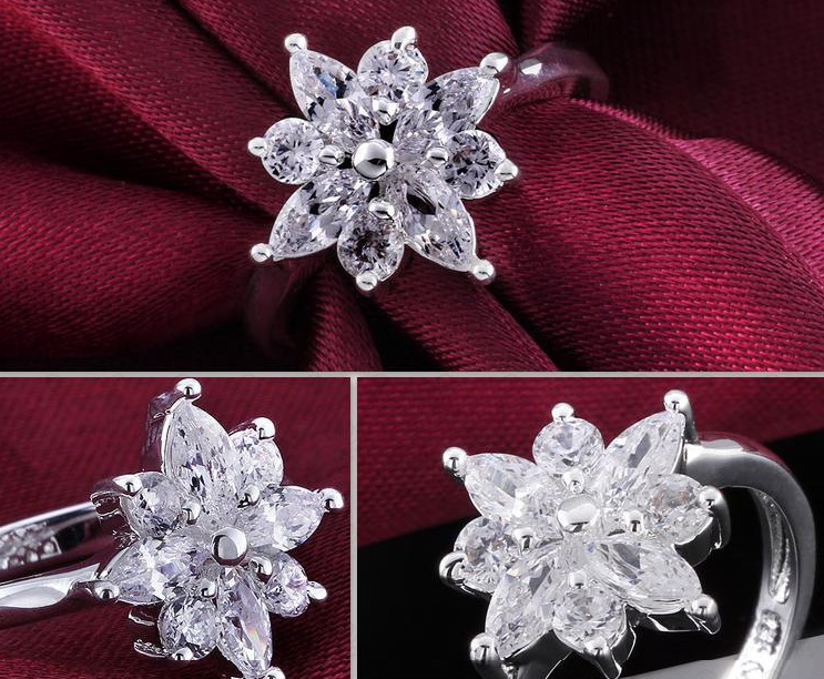 baru cincin mewah perak Kristal bunga The new silver ring, crystal flower wedding rings for women, engagement rings Lovers JEW SJA0846535262 GHJ qty000