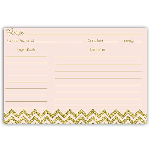 Recipe Cards, Double Sided, 4 x 6, Bridal Shower, Pink, Gold, Glitter, Chevron Stripes, Wedding, Blush, Housewarming, 24 Printed Cards,,