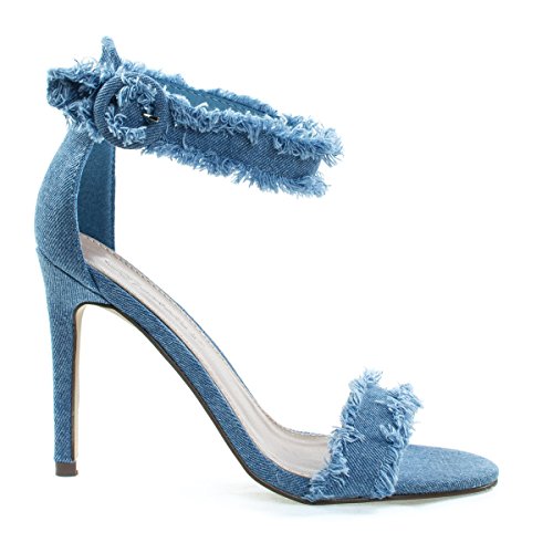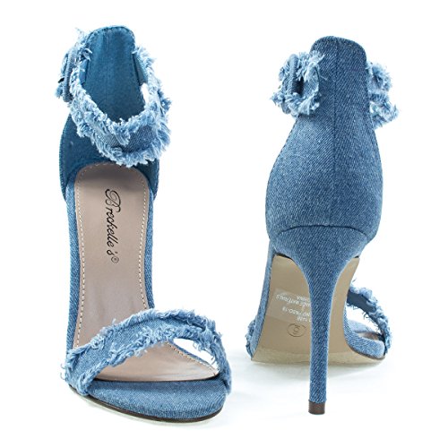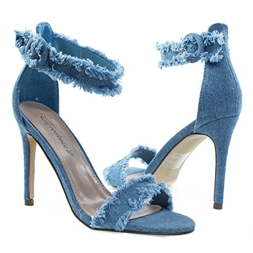 Binding : Apparel Product Description About This Shoes :Charm with these fringe edged denim sandal featuring a high stiletto heel, single toe strap, adjustable above ankle strap and destroyed fringe trimming. Brand - Breckelle's Colors Available: Blue Denim Occasion: Formal Shoe Type: Heels - Open Toe Shoe Style: Ankle Strap Inner Lining: synthetic Heel Height In Inches - 4 Heel Style - Stiletto Toe Style - open-toe Platform Height In Inches - 0.25 Shaft Height In Inches - n/a Circumference Opening - n/a Strap Type - ankle-strap Sole - manmade All Man Made Material unless otherwise stated. Computer/Phone/Table monitors might show color differently because of its quality or calibration, we suggest you look at the photo in at least 3 monitors if you need exact color match of your shoes. 0
