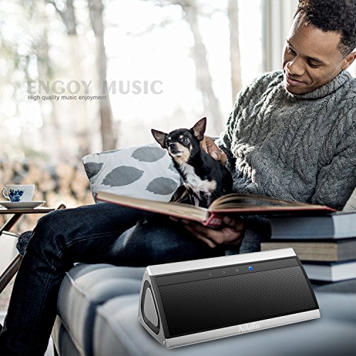 Aolaifo 3D HD Bluetooth Speakers with 10 HoursPlaytime/Passive Sub Woofer/Built-in Mic (Silver)