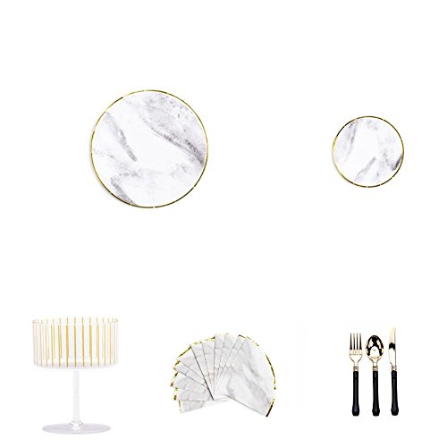 Sugar & Cloth Marble Party Pack, Plates, Napkins, Flatware, Napkins