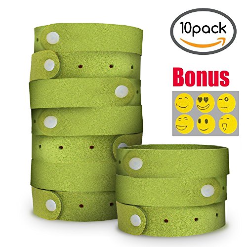 Mosquito Repellent Bracelet by Finita Pesto - Non-Toxic - SAFE for Children and Pets - All natural and long lasting - PACK of 10 Green Bracelets