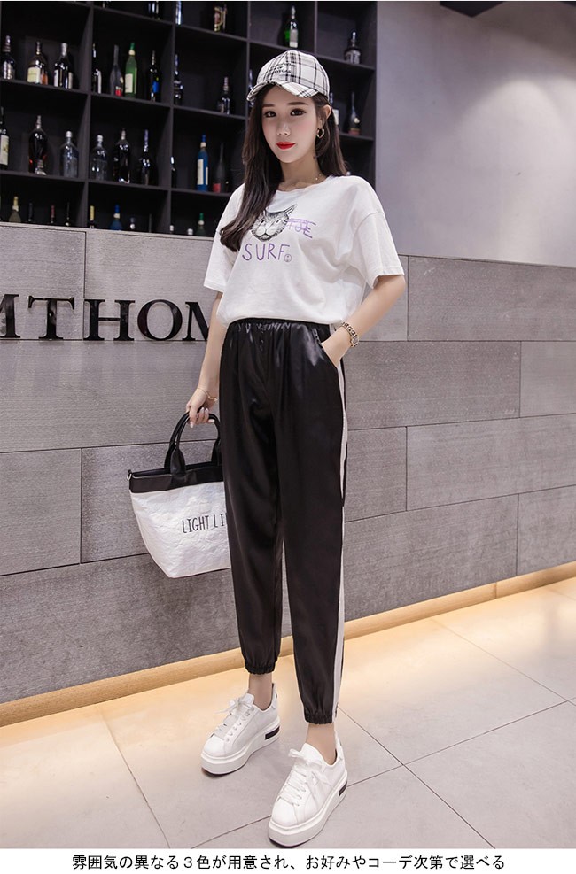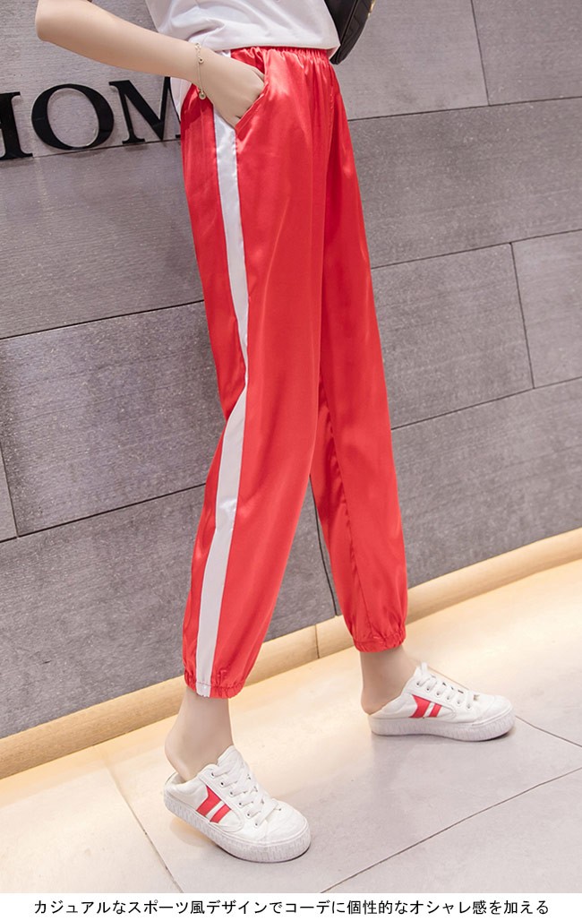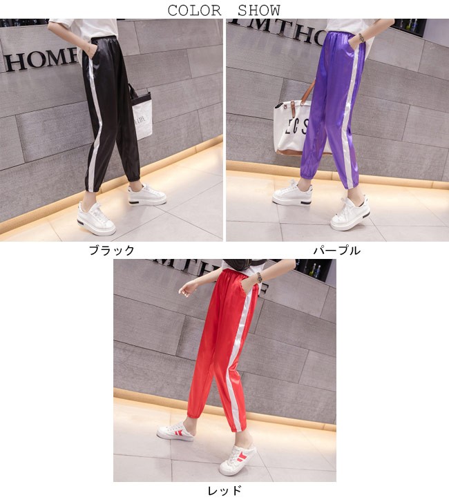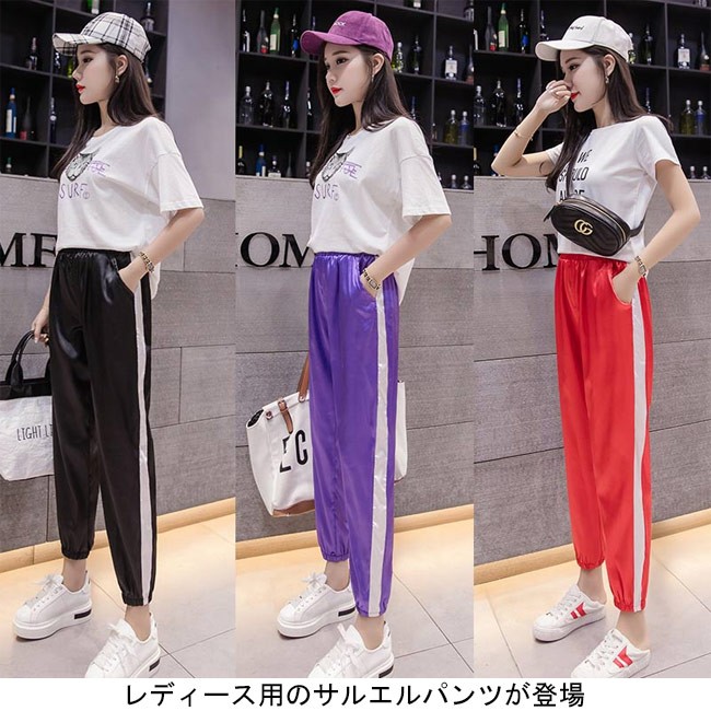 サルエルパンツ ウエストゴム レディース 九分丈パンツ ゆったり スポーツウェア 女性用 ボトムス カジュアル 夏物 春秋物 ロングパンツレディース用のサルエルパンツが登場滑らかなシルク質の素材を使い、ソフトな肌触りをもたらすゆったりとしたシルエットで更に爽やかな履き心地、そして体型カバーも果たせるカジュアルなスポーツ風デザインでコーデに個性的なオシャレ感を加える光沢ありの質感で若者ならではのトレンディーなアクセントを付ける雰囲気の異なる3色が用意され、お好みやコーデ次第で選べるカラー:ブラック パープル レッド素材 ポリエステルサイズ(cm) S M L XL 2XLS ウエスト62-68 ヒップ90-95 総丈86M ウエスト65-71 ヒップ93-98 総丈87L ウエスト68-74 ヒップ96-101 総丈88XL ウエスト71-77 ヒップ99-104 総丈892XL ウエスト74-80 ヒップ102-107 総丈90ご注意:※サイズは平置きサイズです。素人採寸ですので、若干の誤差がございます、ご了承ください。