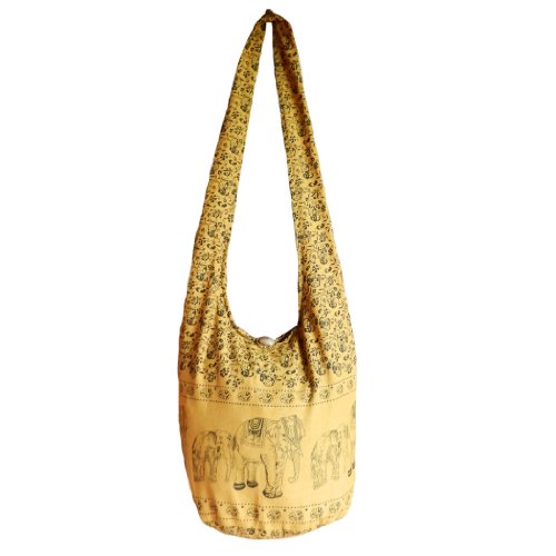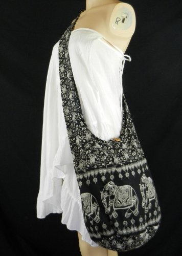 -. Title : BTP! Elephant Floral P.R.Int Sling Crossbody Shoulder Bag Purse Hippie Hobo Thai Cotton Gypsy Bohemian Large