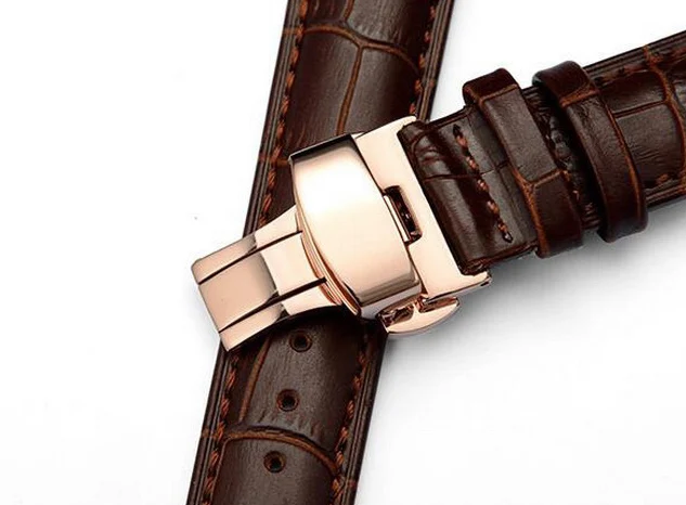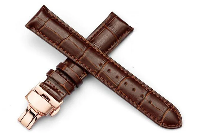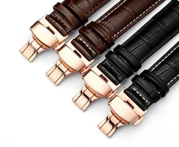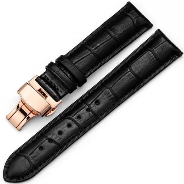 | [해외] 가죽 시계 밴드 손목 스트랩 16 미리메터 18 미리메터 20 미리메터 22 미리메터 24 미리메터 골드 butterfly 버클 버클 교체 팔찌 벨트 블랙 브라운 |