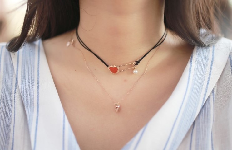 [TROIS ROIS]Heart Pin Choker TA0120/Safety Pin Necklace/Ko Jun Hei/Han Hye-jin