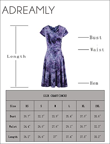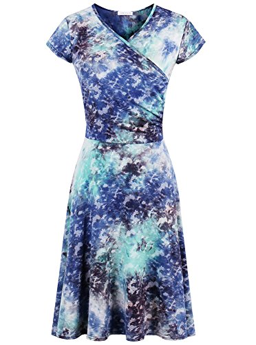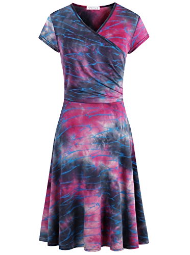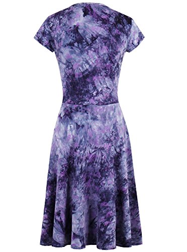 Women's Casual Tie Dye A-line Cap Sleeve Summer V Neck Wrap Flared Midi Dress Purple Medium