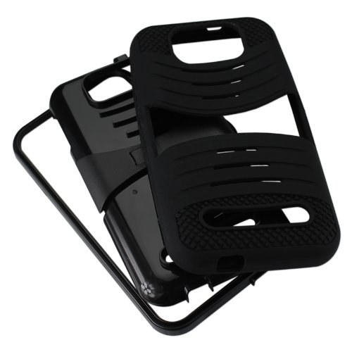 Reiko Silicon Case and Protector Cover with New Kickstand for BLU Studio 5.5 D610A, D610I - Retail Packaging - Black
