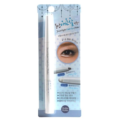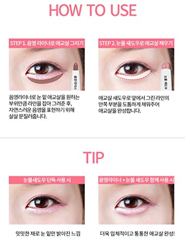A dual-end makeup to get cute aegyo-sal (eye smiles) under the eyes Soft eyeliner on one side to define the bottom of the natural poof Plus a shimmering cream eyeshadow on the other side to emphasize it Shiny effect also makes eyes look brighter & wider for rounder eyes Leaves your eyes looking sexy & alluringFeature