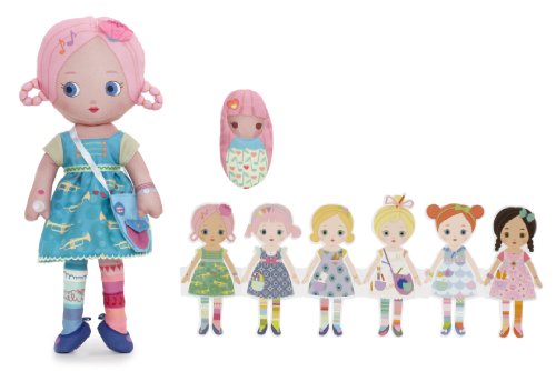 - Feature : 13-Inch soft doll made of unique soft fabric / Machine washable / All have velcro hands for holding hands with friends / Includes finger puppet dolly and string of paper doll cross-sell / Each doll includes special 3D details that make her unique from a flower bracelet to a bow headband; This doll does not sing