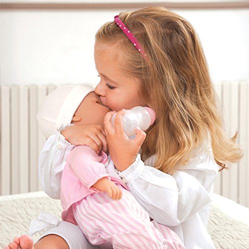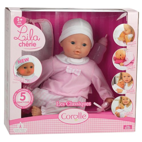 - Feature : Lila is a soft-bodied doll with five baby-like features: When you press her left hand (decorated with pink hearts), she coos and babbles / She sucks on her bottle, laughs when her tummy is tickled and cries when you lay her on her stomach / Lila operates with 3 AAA batteries (not included) / Measures 17" tall / Designed and styled in France