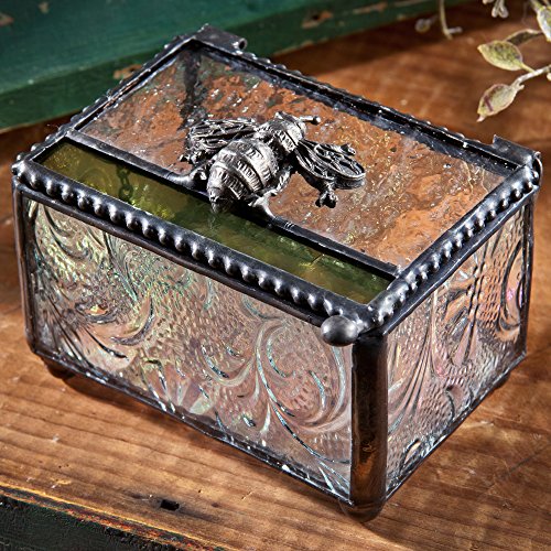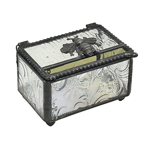 J Devlin Box 753 Glass Keepsake Box with Bumble Bee Accent Nature Inspired Design Decorative Gift Jewelry Trinket