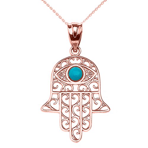 -. Title : 10k Rose Gold Hamsa Hand With Evil Eye Pendant Necklace