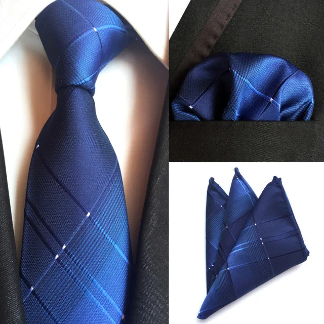 [해외]8 센치메터 남성 클래식 100% 실크 블루 넥타이 세트 (넥타이 손수건) 스트라이프 포켓 광장 목 넥타이 파티 비즈니스 웨딩 넥타이 손수건